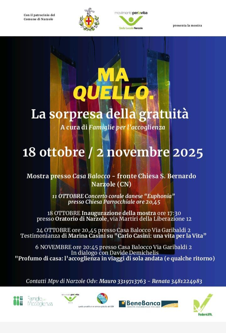Iniziative principali: Giornata per la Vita, Festa di S. Valentino, Giornata delle mamme in attesa, Festa della Famiglia.