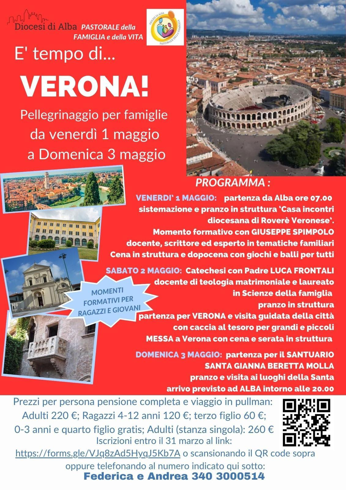 Pellegrinaggio diocesano per le famiglie Anche quest’anno l’Ufficio pastorale della famiglia e della vita diocesano propone un pellegrinaggio a Verona dal 1/5 al 3/5. Pellegrinaggio Verona