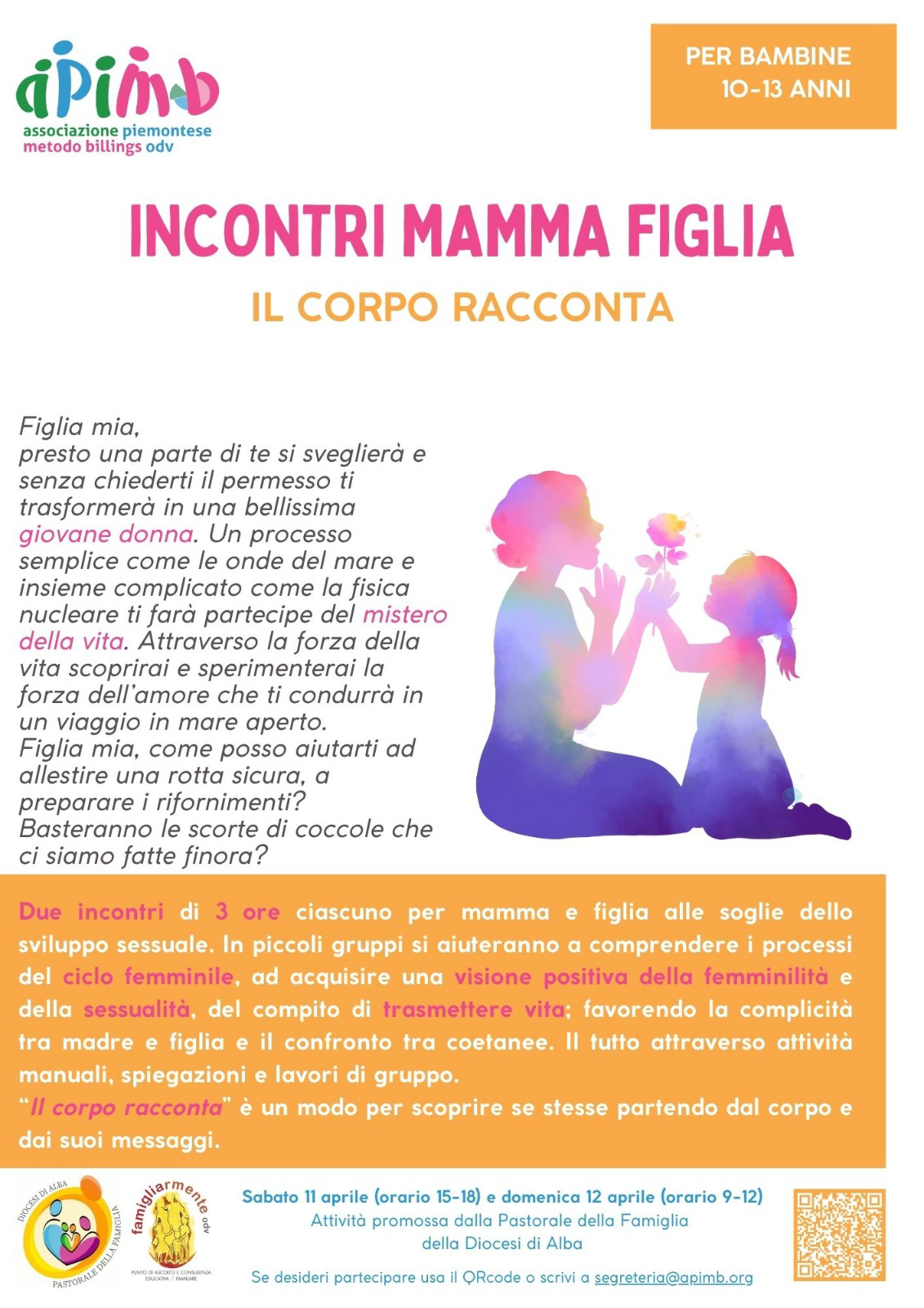 La pastorale famigliare diocesana in collaborazione con Apimb e Famigliarmente propone incontri mamma- figlia organizzati da Apimb, per bimbe di … Leggi tutto L’ufficio famiglia organizza incontri mamma figlia
